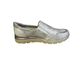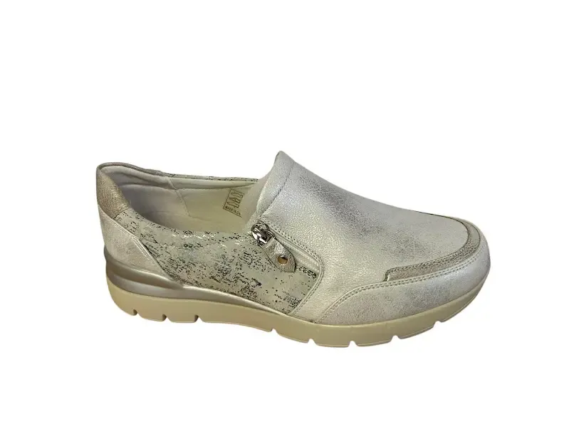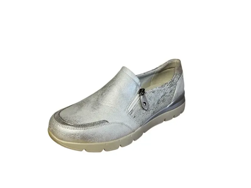 LÉNA bőr talpbetétes női kényelmi cipő oldalt cipzárral, gumis betéttel ezüst