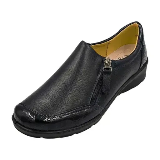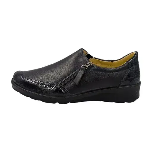 STELLA bőr talpbetétes női kényelmi cipő elején hátulján lakkbetéttel fekete