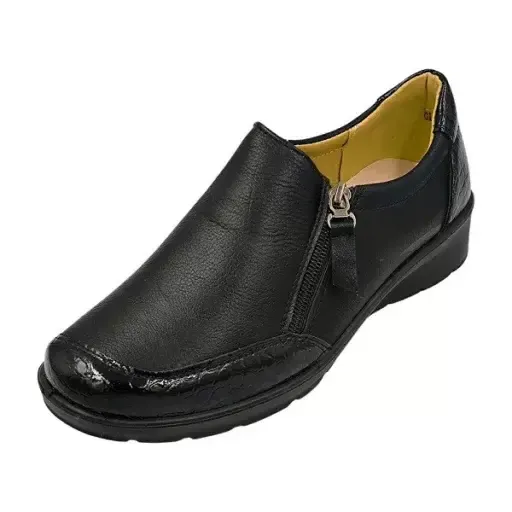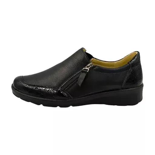 LÉNA bőr talpbetétes női kényelmi cipő oldalt cipzárral, gumis betéttel ezüst